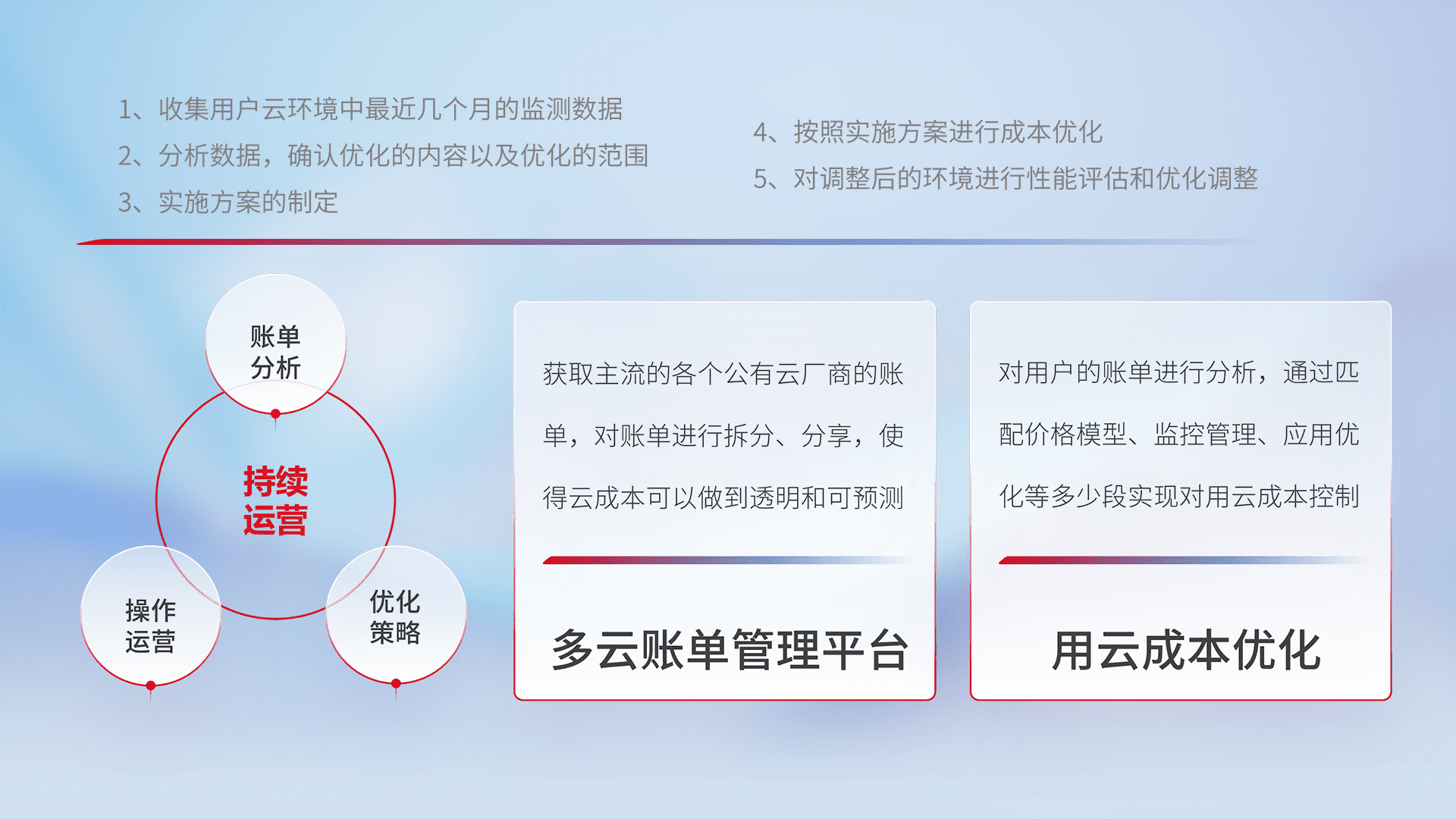 运用智能化工具分析云资源,,提供日常费用可视化工具,,自动账单拆分,,,,成本优化云上费用,,,降本增效。。